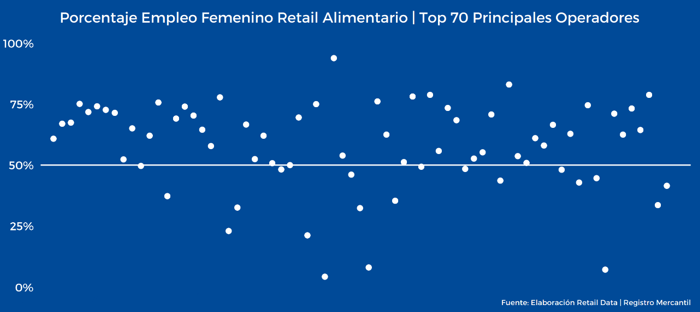 La distribución minorista de alimentación es femenina y vertebradora. Más de 242.000 mujeres representan el 65,5 por ciento de la plantilla conjunta de los 70 operadores analizados por la consultora Retail Data y ASEDAS (Asociación Española de Distribuidores, Autoservicios y Supermercados), mientras que en 10 de ellos este porcentaje supera el 75 por ciento.